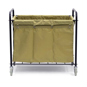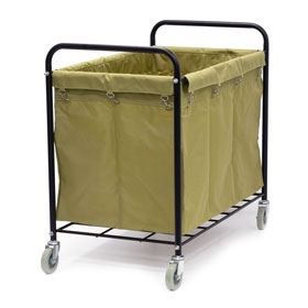 This 12-bushel laundry cart with wheels is perfect for transporting hotel linens. Features a heavy-duty canvas bag that will hold large amounts of dirty laundry or garbage. The 4" non-marking casters provide excellent mobility and help keep your hard floors in good condition. The raised handles make maneuvering through tight spaces easy.
