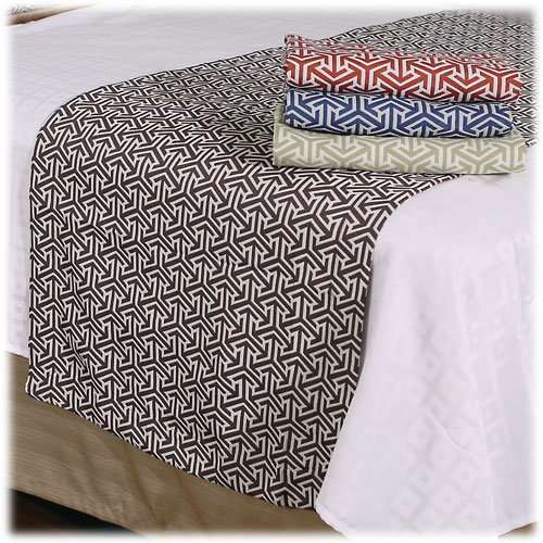 The Tri'Aro 100% polyester jacquard design bed scarves and runners are a compliment to any hotel, motel, or bed & breakfast property looking to take the next step towards modernization. Available in four fashionable colors: Blue, Brick, Brown, and Sage. Complete the entire ensemble with the coordinating bed skirt and a matching or contrasting bolster / square pillow. Sold in full cartons of 6.