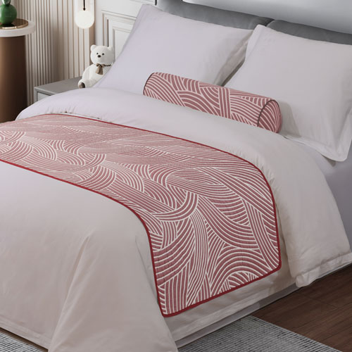 Update and modernize your guestroom with 100% polyester 340 GSM weighted jacquard design bed runners. A fresh euro design coordinates with and adds excitement to ordinary bedding. Available in 5 contemporary colors. Decorate the bed in style with matching bolster pillows. Priced individually and sold in cartons of 6.